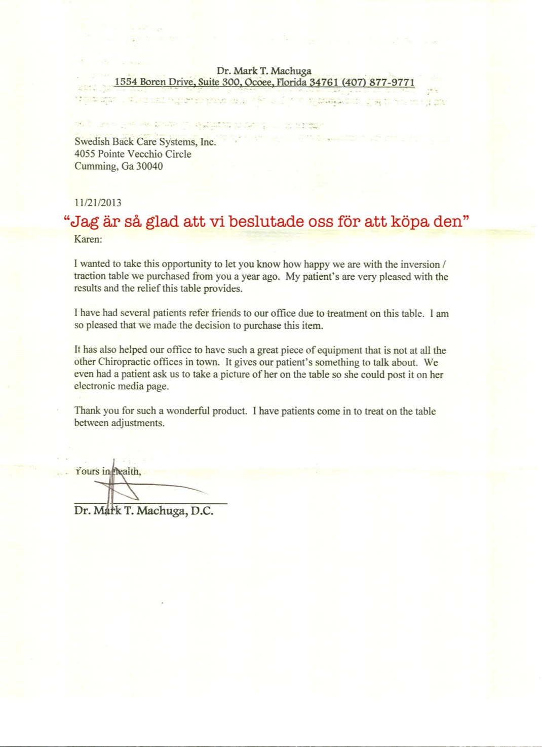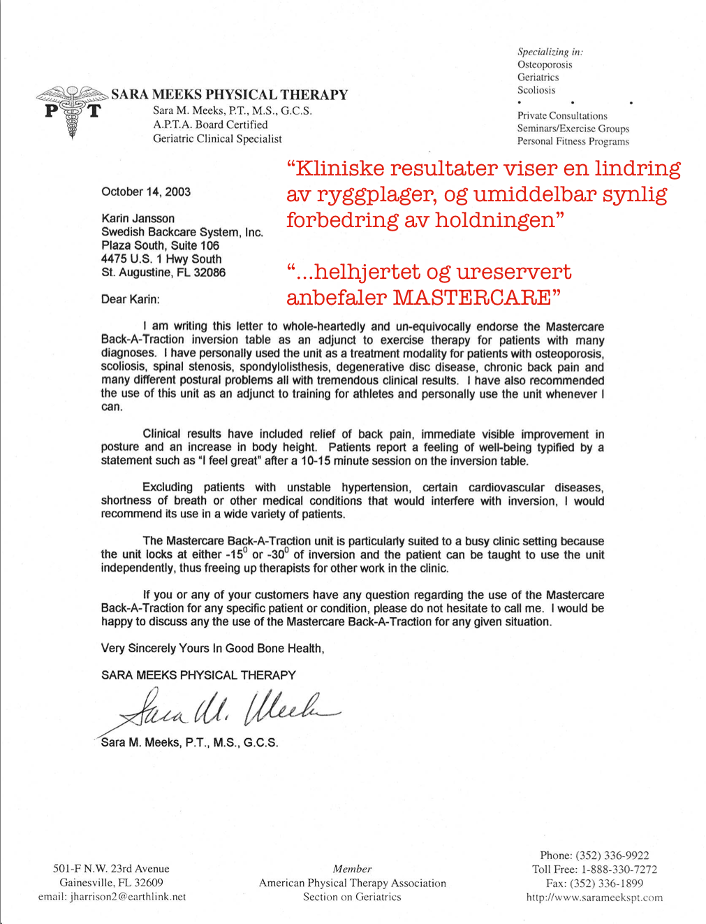 Prinsippet ved alle MASTERCARE benkene, stor som liten, er det samme: en utstrekking av kroppen på et bevegelig brett som muliggjør trekkraft ved lav vinkel (15 grader), der kroppens muskler kan slappe av slik at intet "stritter imot"